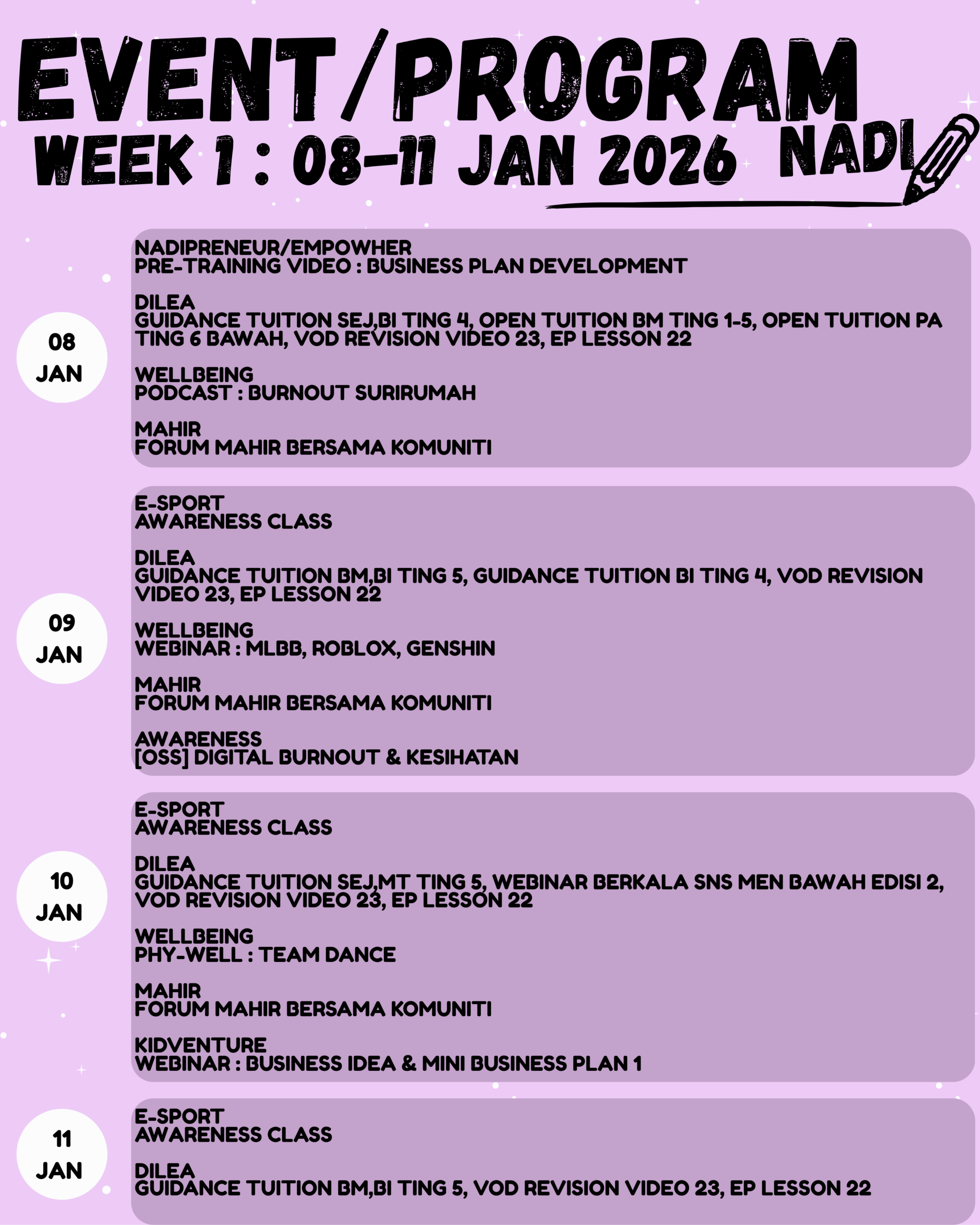 𝐖𝐞𝐛𝐢𝐧𝐚𝐫 𝐍𝐀𝐃𝐈 𝐱 𝐂𝐲𝐛𝐞𝐫𝐬𝐞𝐜𝐮𝐫𝐢𝐭𝐲 Tarikh: 15 Januari 2026 (Khamis) Masa: 3.00 PM – 4.30 PM Tempat: NADI Kampung Assyakirin Topik: Ancaman Siber Dalam Dunia Digital Seiring dengan perkembangan pesat teknologi […]