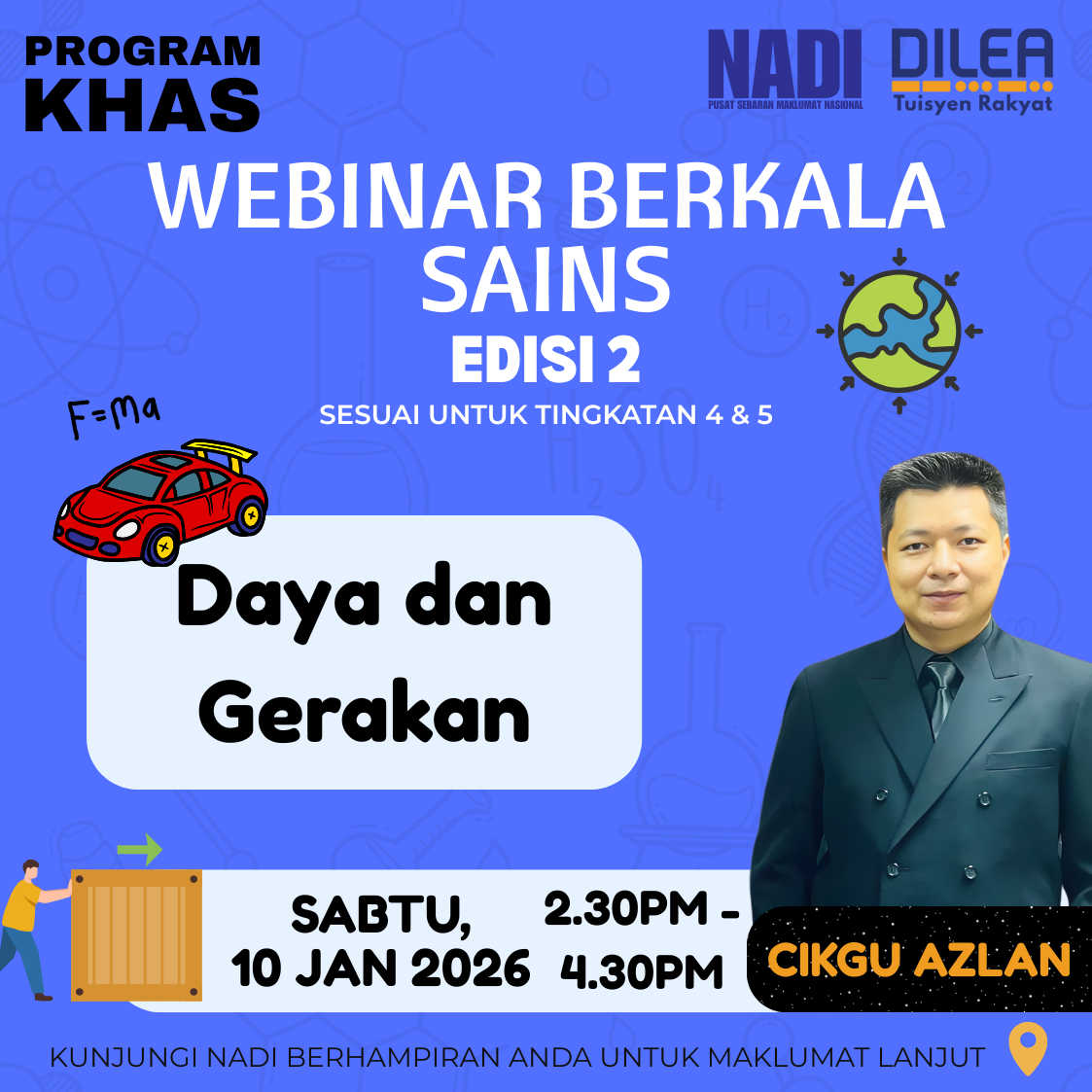 𝐖𝐄𝐁𝐈𝐍𝐀𝐑 𝐁𝐄𝐑𝐊𝐀𝐋𝐀 𝐒𝐀𝐈𝐍𝐒 – 𝐄𝐃𝐈𝐒𝐈 𝟐 Hello pelajar Tingkatan 4 dan 5! Topik Daya dan Gerakan buat anda pening kepala? Susah faham konsep, formula dan aplikasi dalam soalan peperiksaan? Jangan […]