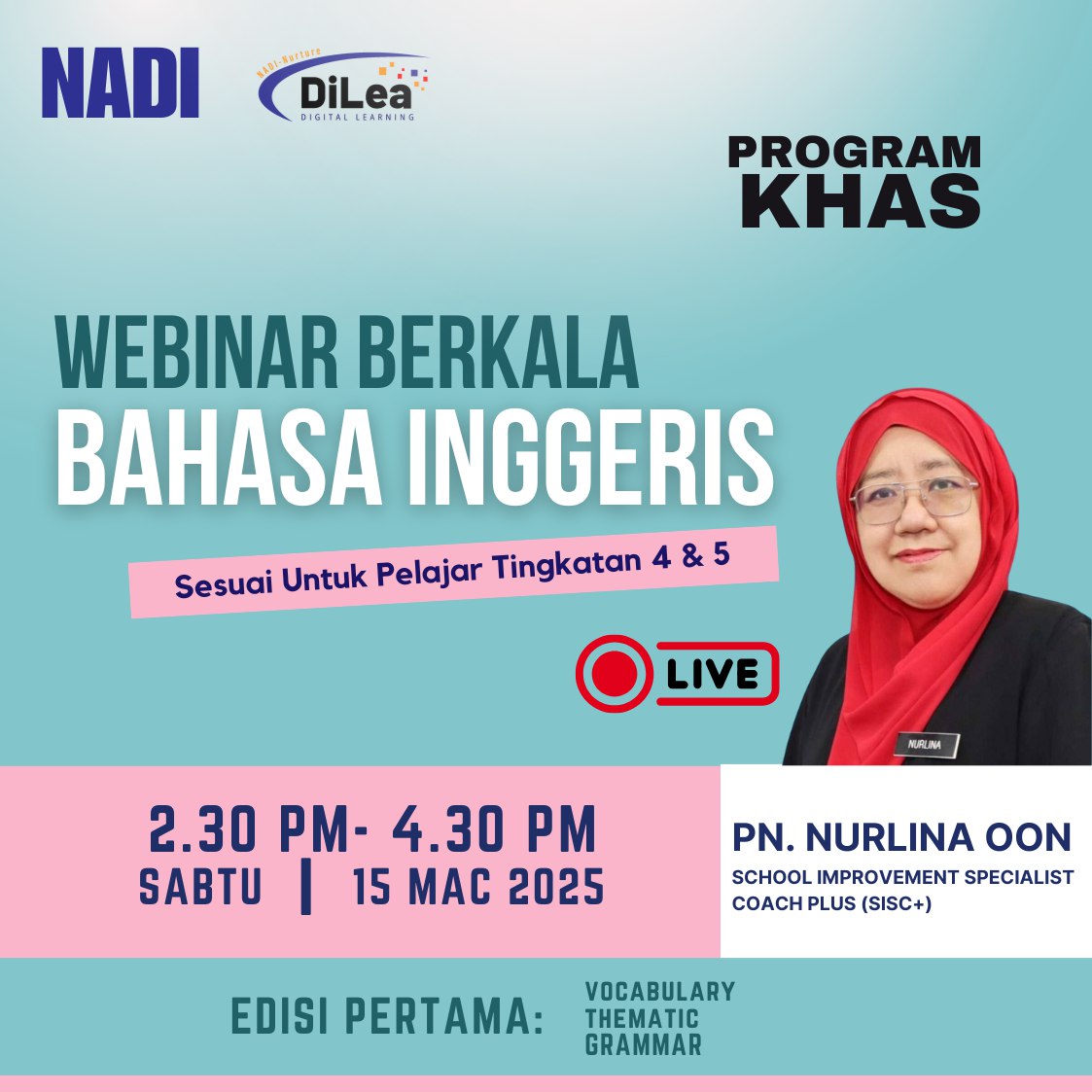 ๐ข Webinar Berkala Bahasa Inggeris Edisi 1 ๐ข ๐ Tarikh: 15 Mac 2025 (Sabtu)โฐ Masa: 2.30 ptg – 4.30 ptg๐ Tempat: NADI Kampung Assyakirin โจ Program khas untuk pelajar Tingkatan […]