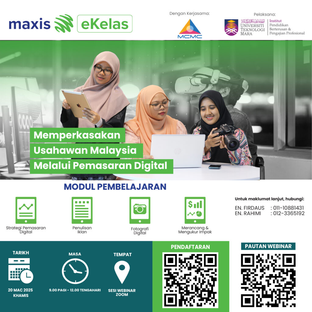 Adakah anda seorang usahawan mikro yang ingin meningkatkan kehadiran digital dan jualan dalam talian? Jangan lepaskan peluang ini! Sertai Webinar NADI Nurture – eKelas Usahawan untuk belajar teknik pemasaran digital, fotografi produk, copywriting, serta cara mengukur impak perniagaan anda.