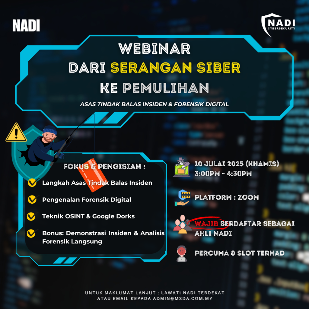 Jom rebut peluang ini untuk fahami cara profesional menangani serangan siber.